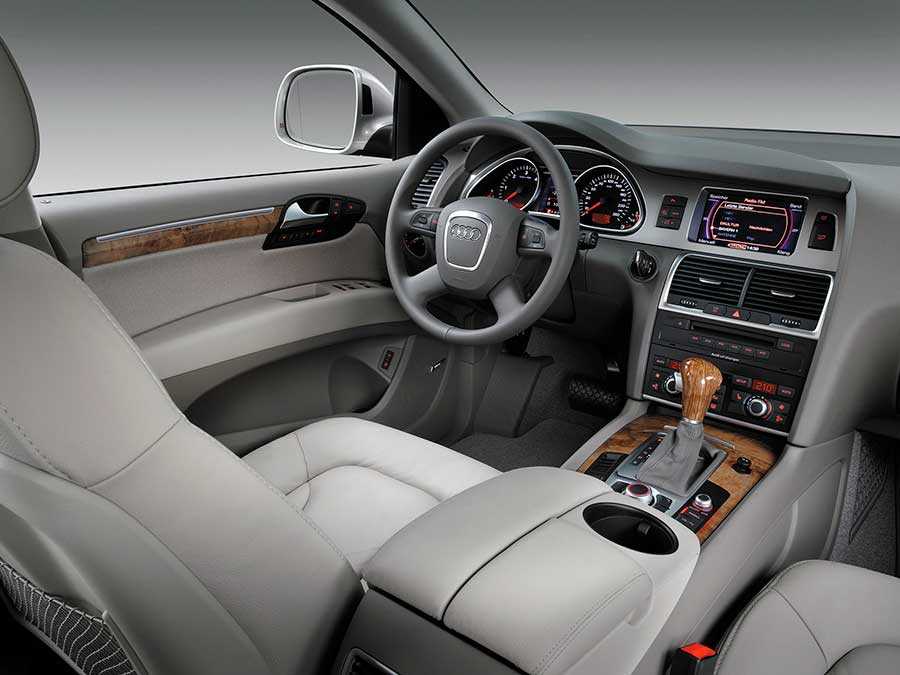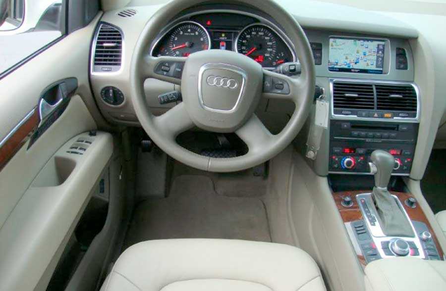 Audi Q7 первой генерации имеет постоянный полный привод с распределением усилий на колеса 40/60, два или три ряда сидений (два задних кресла – складные).