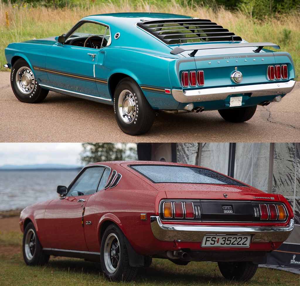 Ford Mustang (1969) и Toyota Celica Liftback (1973)
