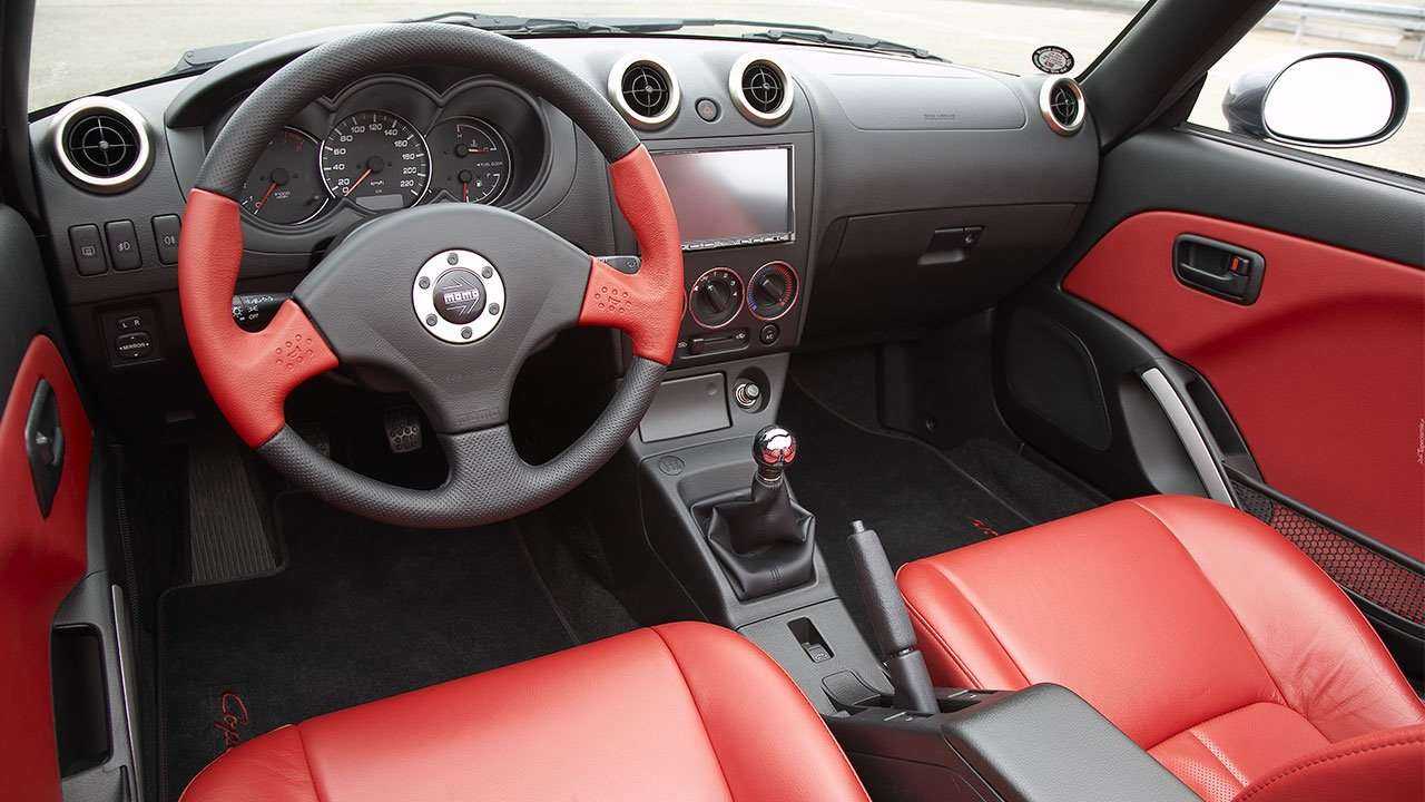 Руль намного современнее. Он 3-спицевый с выпуклой подушкой и кнопками от аудиосистемы. Преобразили приборную панель, вставив в нее слева аналоговый индикатор тахометра, посередине большой спидометр, а справа датчик уровня топлива. На боковых приборах Daihatsu Copen внизу находятся мониторы бортового компьютера.