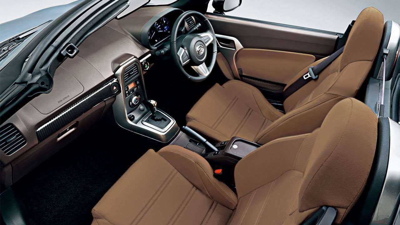 Если у первого поколения Daihatsu Copen был лишь тонкий намек на боковую поддержку у кресел, то во второй генерации она уже ярко выраженная. За счет наличия возможности регулировок, кресла можно подстроить конкретно под себя. Клиентов приятно порадует наличие подогрева для сидений, которое они получают при покупке базового оснащения. Плюс за счет регулируемой по высоте рулевой колонки, настроить оптимально водительское место не составит труда.