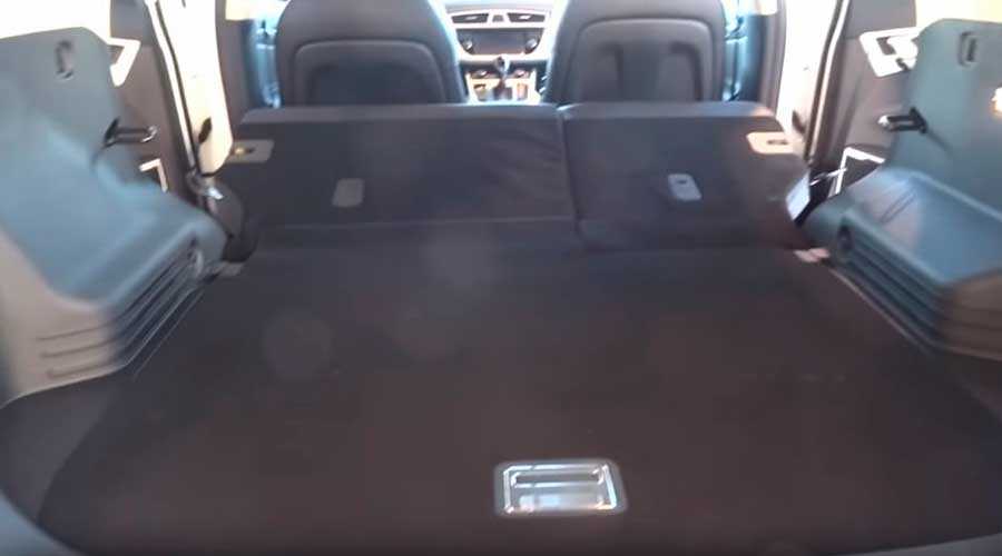 При складывании задних спинок «сидушек» площадка получается почти ровной, но есть ступенька, причем, разложенные сиденья немного ниже уровня пола багажника.
