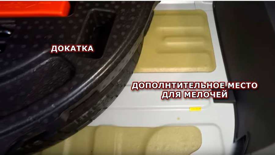 Под поликом в нише предусмотрена лишь малоразмерная запаска, но есть и плюс – места в «подполье» вокруг колеса более чем достаточно, и можно хранить немало всяких вещей.