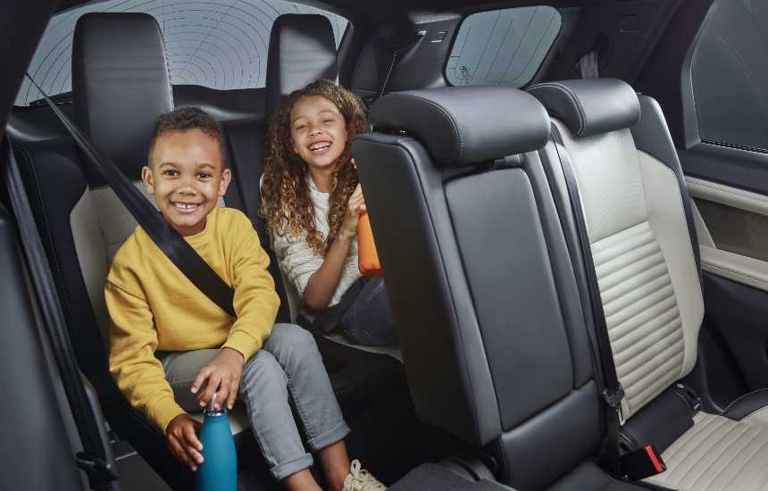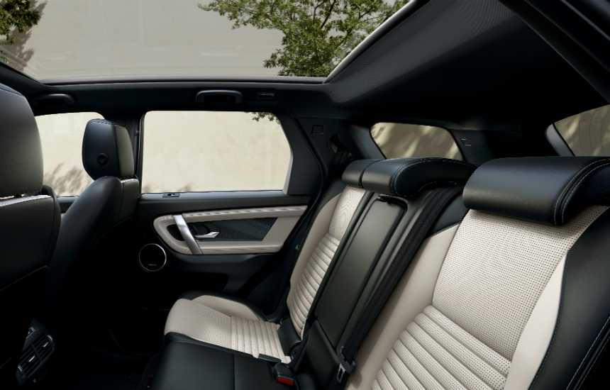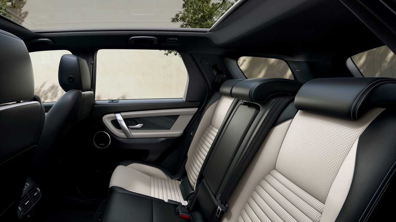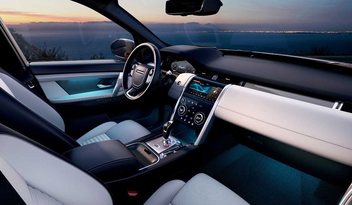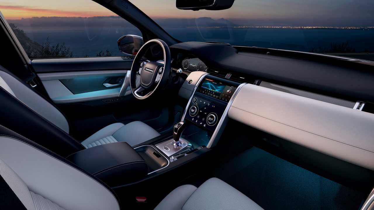 Салон Discovery Sport отличается минималистическим исполнением. Большая часть внутреннего пространства закрыта дорогостоящими отделочными материалами (в основном двухцветной кожей). Практически все элементы управления бортовой электроникой вынесены на центральную консоль, где располагаются сенсорный монитор и крупный блок климатической установки с отдельными TFT-экранами. Передние кресла характеризуются продуманной конфигурацией, которая обеспечивает комфортабельную посадку. То же самое касается и второго ряда сидений. А задние кресла предназначены, по сути, для перевозки детей.