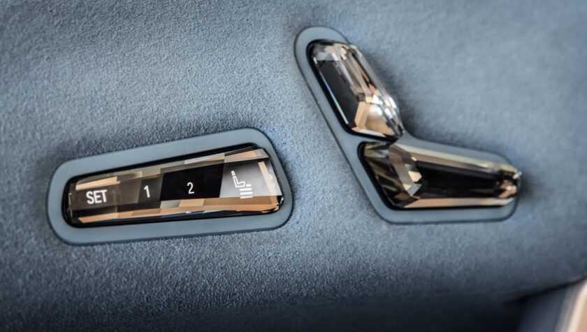 Последний объединяет приборку и дисплей системы мультимедиа, а смотреть на него водителю частично придется через шестиугольный обод рулевого колеса. Еще одна «фишка» салона – кнопки-кристаллы, которые можно заметить на дверных картах и отделке центрального тоннеля. Прозрачный материал используется даже для шайбы переключения режимов работы трансмиссии.