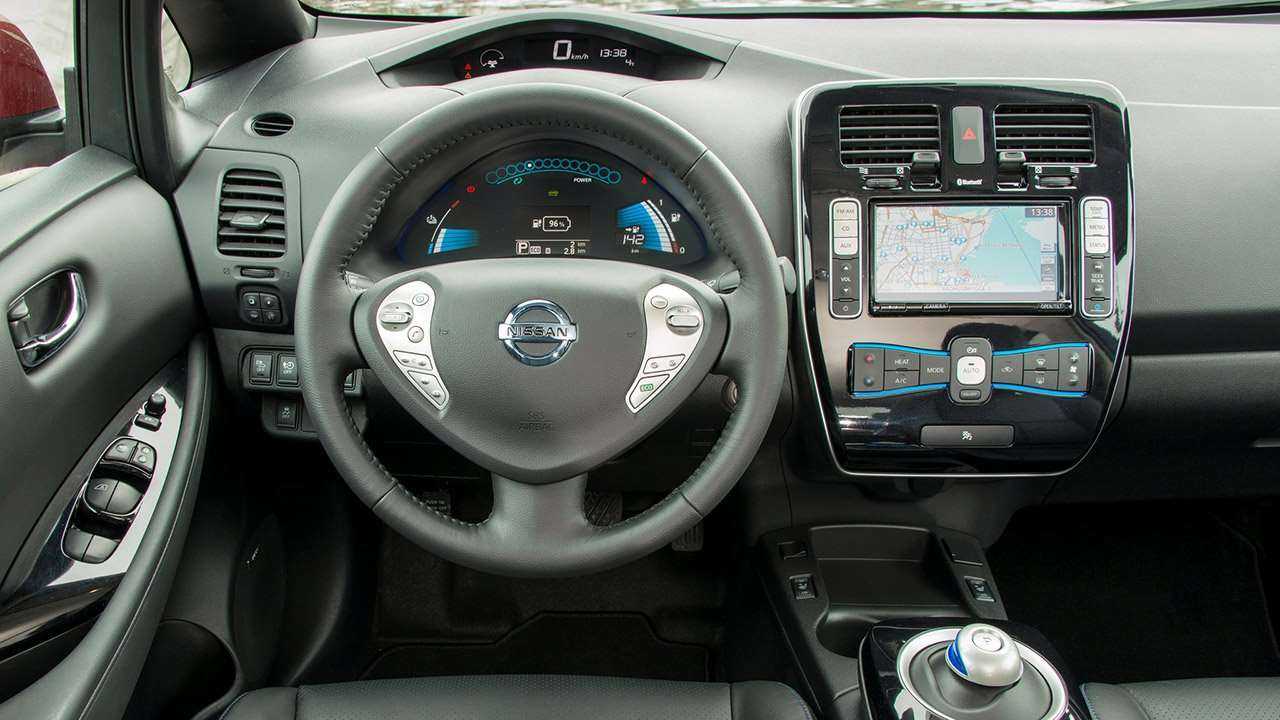 На центральной консоли Nissan Leaf стоит сенсорная мультимедиа с навигацией Carwings и масса кнопок ниже с синей подсветкой. Отметить стоит систему отопления, которая важна для России. В дорестайле стояла жидкостная система, циркулирующая через радиатор. Такую же ставят бензиновым автомобилям, но электрический двигатель таких температур не достигает, поэтому салон прогревается долго.