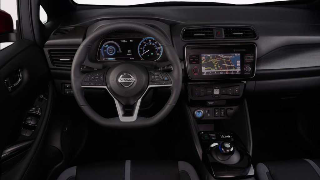 Внутреннее убранство Ниссан Лиф 2018 было оформлено без изюминки, но и не лишено необычных дизайнерских решений. Сильно преобразившись снаружи, японская машина также изменилась и внутри. Отдел разработок постарался максимально удобно расположить блоки управляющих элементов и увеличить информативность присутствующих дисплеев.