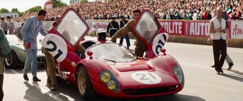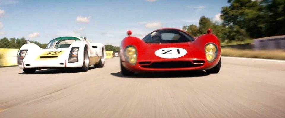 Кадр с Ferrari P (реплика от RCR) из фильма «Ford против Ferrari» 2019 года