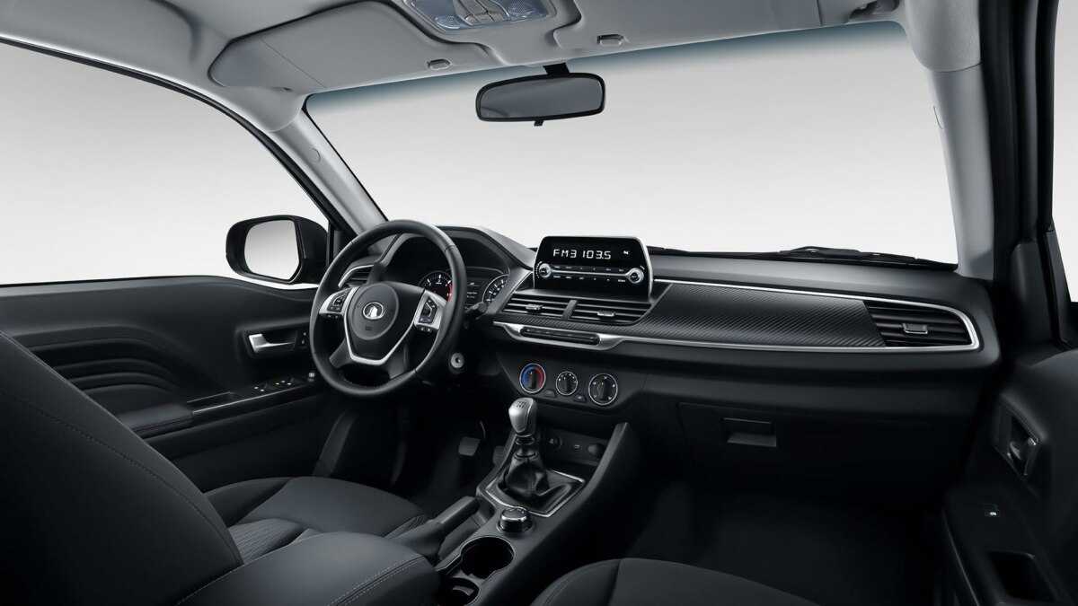 Салон китайского пикапа достаточно простой и не сильно выделяется на фоне других современных автомобилей. На центральной панели привычно размещается большой экран системы мультимедиа, а также блок управления климатической установкой. Салон автомобиля выполнен преимущественно в темных тонах, что в свою очередь показывает на практичность, которую в первую очередь преследовали разработчики. Отдельно в данном случае можно выделить привычную приборную панель, которая получила интересный центральный дисплей и стандартные шкалы приборов.