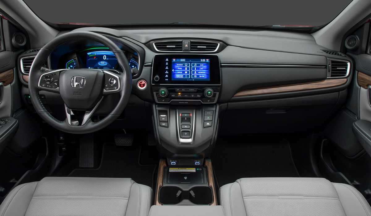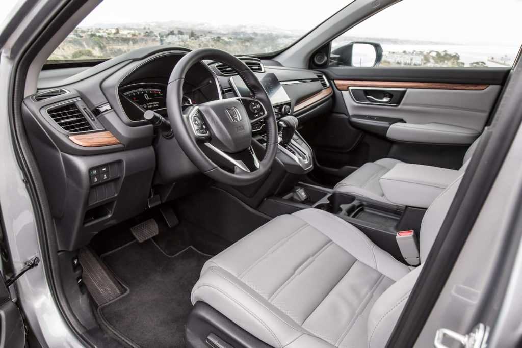 Среди особенностей интерьера новой модели Хонда СРВ стоит отметить несколько небольших изменений. В том числе – тщательно продуманную эргономику и качественные материалы отделки. А ещё – изменение площадки центрального тоннеля, в которую теперь интегрирована беспроводная зарядка для гаджетов. Здесь же есть 2 USB-порта. А полный список оборудования включает встроенный монитор бортового компьютера в центре приборной панели и сенсорный дисплей мультимедийной системы с диагональю 7 дюймов.