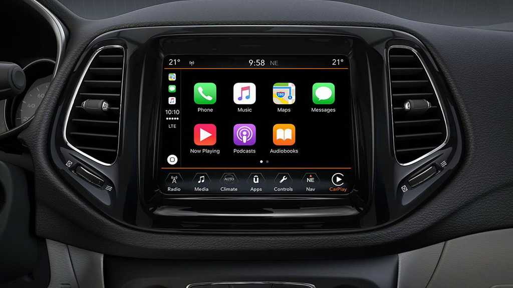 В центре главным дисплеем выступает мультимедиа Uconnect, диагональю 5 или 8,4 дюйма. Мультимедиа поддерживает интерфейсы Apple CarPlay и Android Auto, а также опционально доступна аудиосистема Beats на 9 динамиков. Через нее же можно настраивать климат-контроль, основной механический блок которого находится ниже. Дальше по центру производитель расположил: