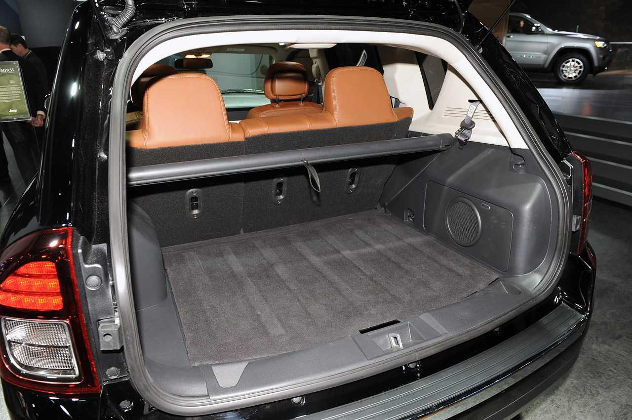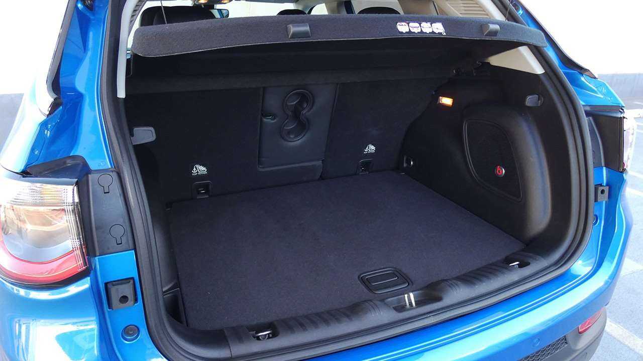 Салон у Compass предоставляет много свободного пространства для пассажиров заднего ряда. Но багажный отсек способен вмещать до 368 литров груза. Этот показатель увеличивается до 1251 литров, если опустить спинки задних сидений. Конструкция багажника также не лишена недостатков. Установка специальной полки занимает слишком много времени, а кнопка закрытия дверцы располагается в неудобном месте.