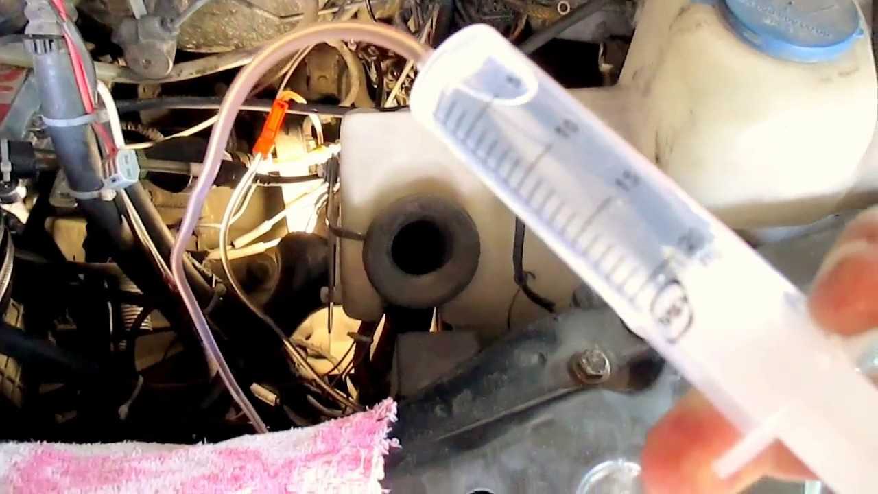 - шприцем вытягиваем ТЖ из системы, сначала вместе с жидкостью будет выходить воздух;