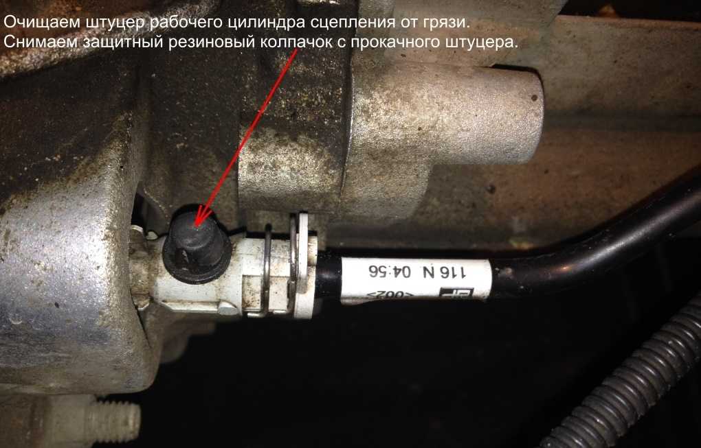 2). Снимаем защитный колпачок с клапана удаления воздуха на рабочем цилиндре сцепления.