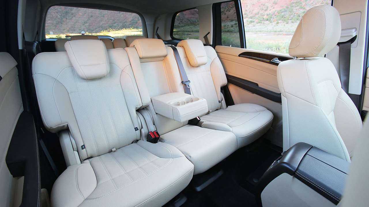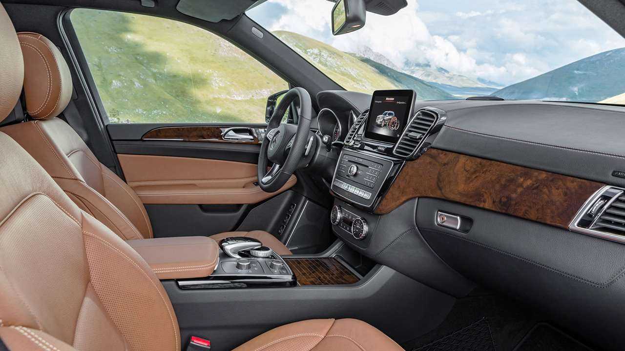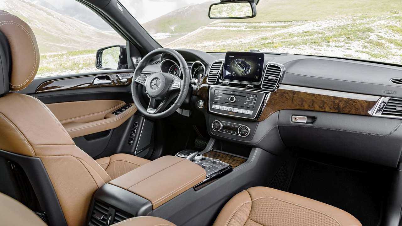 Салон немецкой модели обеспечивает максимальный уровень комфорта. За это отвечают сидения с развитой боковой поддержкой, многочисленной электронной «начинкой» и удобной конфигурацией. Цифровая приборная панель, как и на других моделях Mercedes-Benz, у GLS объединена с сенсорным монитором того же размера. Примечательно то, что оба экрана лишены солнцезащитного козырька. На центральной консоли кроссовера расположены 4 прямоугольных дефлектора обдува и тонкая полоска блока управления климатом. Трансмиссионный тоннель содержит компактный мультимедийный джойстик, по бокам которого вынесены оригинальные вставки со светодиодной подсветкой.