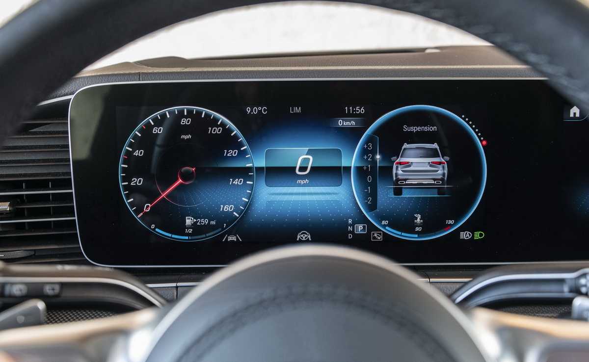 Панель приборов Mercedes-Benz GLS-Class X166 нововведениями не обзавелась. Она представляет собой два больших колодца с аналоговыми датчиками и многофункциональный бортовой компьютер в центре.