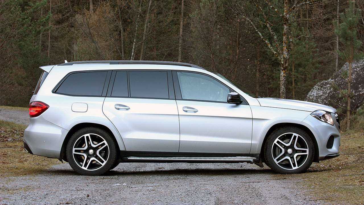 Сбоку ничего нового практически нет. Примерно те же массивные расширения арок и выштамповка идущая понизу. Площадь остеклениям Mercedes-Benz GLS 2019 просто огромная, под общий силуэт она подходит идеально. На крыше установлены хромированные рейтинги, на которые можно установить дополнительное багажное отдаление, то есть они носят не декоративный характер, как у большинства кроссоверов. Диски получили вполне стильный дизайн, по умолчанию они имеют 18-й диаметр, также можно установить большие вплоть до R21.