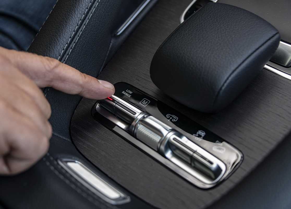 «Понижайка» включается простым нажатием кнопки. Интересно, что она вообще осталась! Как объясняют мерседесовцы, она может понадобиться для маневров с тяжелым прицепом или лодкой
