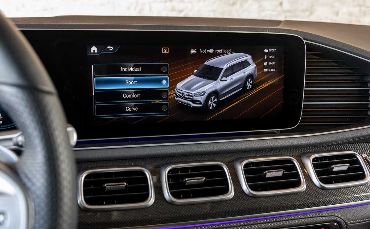 Настройки поведения автомобиля в GLS не для галочки. Характер автомобиля очень меняется, «комфорт» и «спорт» отличаются разительно. Не забываем о режиме curve, в котором машина не кренится от слова «совсем»