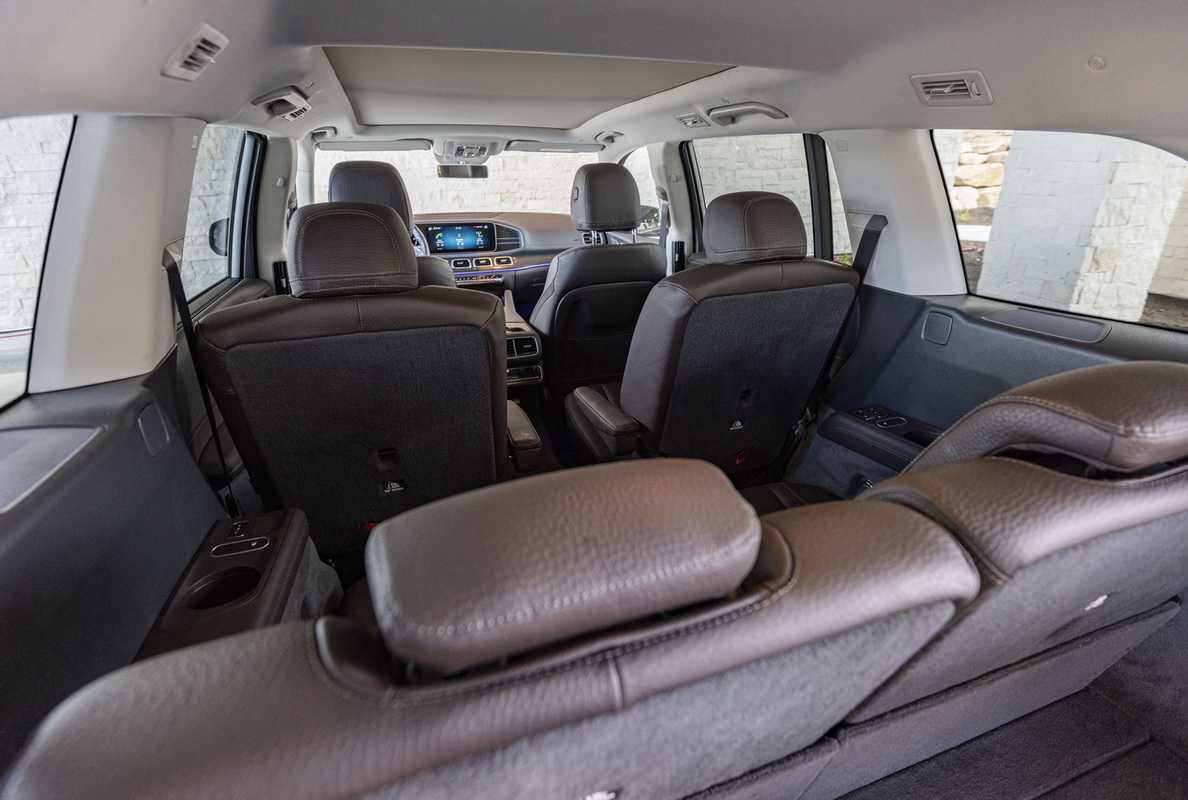 На заднем ряду сидений все в порядке. Сзади могут стоять два раздельных кресла с подлокотниками, и это хороший выбор. Таким креслам тоже доступны массаж и вентиляция. Задний ряд может быть сплошным — но и ему доступны все регулировки, можно двигаться взад-вперед, можно изменять наклон спинки. И, наконец, есть третий ряд. Места там немного, но сидеть можно. «Галерке» доступен подогрев, отдельный кондиционер и отопитель, и подстаканники — Америка, куда без них.