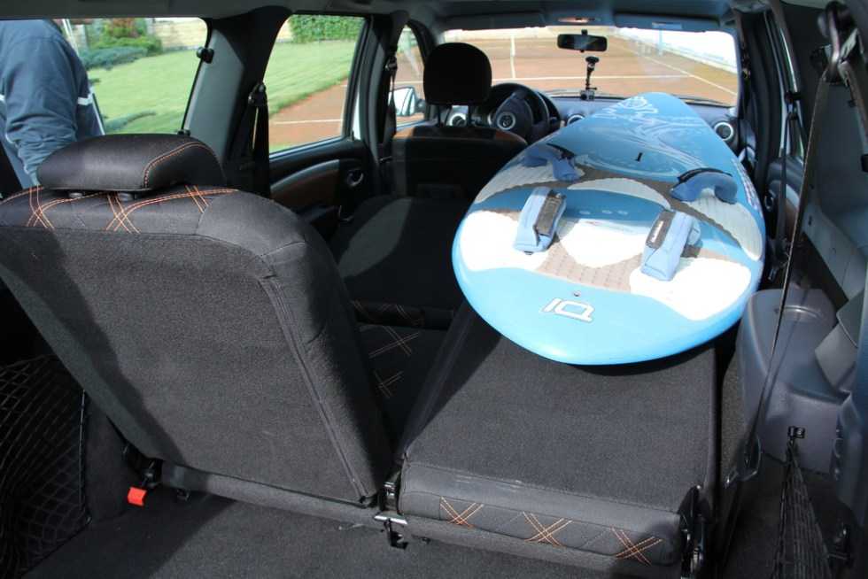 Возможен и такой вариант, когда часть сидений сложены, в салоне едет что-то длинное, например, доска для виндсерфинга, а друг за другом пассажиры сидят в три ряда.