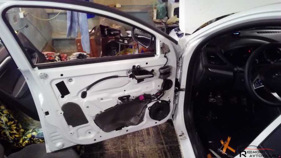 При этом важно не сломать ручку открывания дверей, а также отключить штекера на электрические стеклоподъемники. Затем нужно снять изоляционный материал, наклеенный на дверь, чтобы получить доступ внутрь