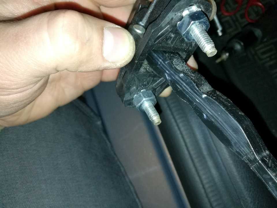 Следующим шагом станет демонтаж непосредственно ограничителя. К кузову он прикручен одним болтом Torx Т40, а к двери парой болтов, для выкручивания которых потребуется головка на 10. Когда болты откручены, остается только вынуть ограничитель, но делать это необходимо аккуратно, так как можно потерять шайбы на шпильках (в местах крепления элемента к двери). Кроме того, после снятия ограничителя с двери Весты, нужно следить, чтобы дверь не открылась дальше положенного, что особенно актуально для передних дверей. В противном случае можно смять кромку и повредить ЛКП.
