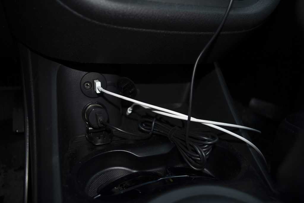 Это ниша с разъёмами под блоком управления климатом. Сверху USB для зарядки телефона, а снизу был прикуриватель, в котором теперь тоже USB порт для зарядки регистратора. Также тут можно заметить aux, который при наличии bluetooth не особенно полезен.