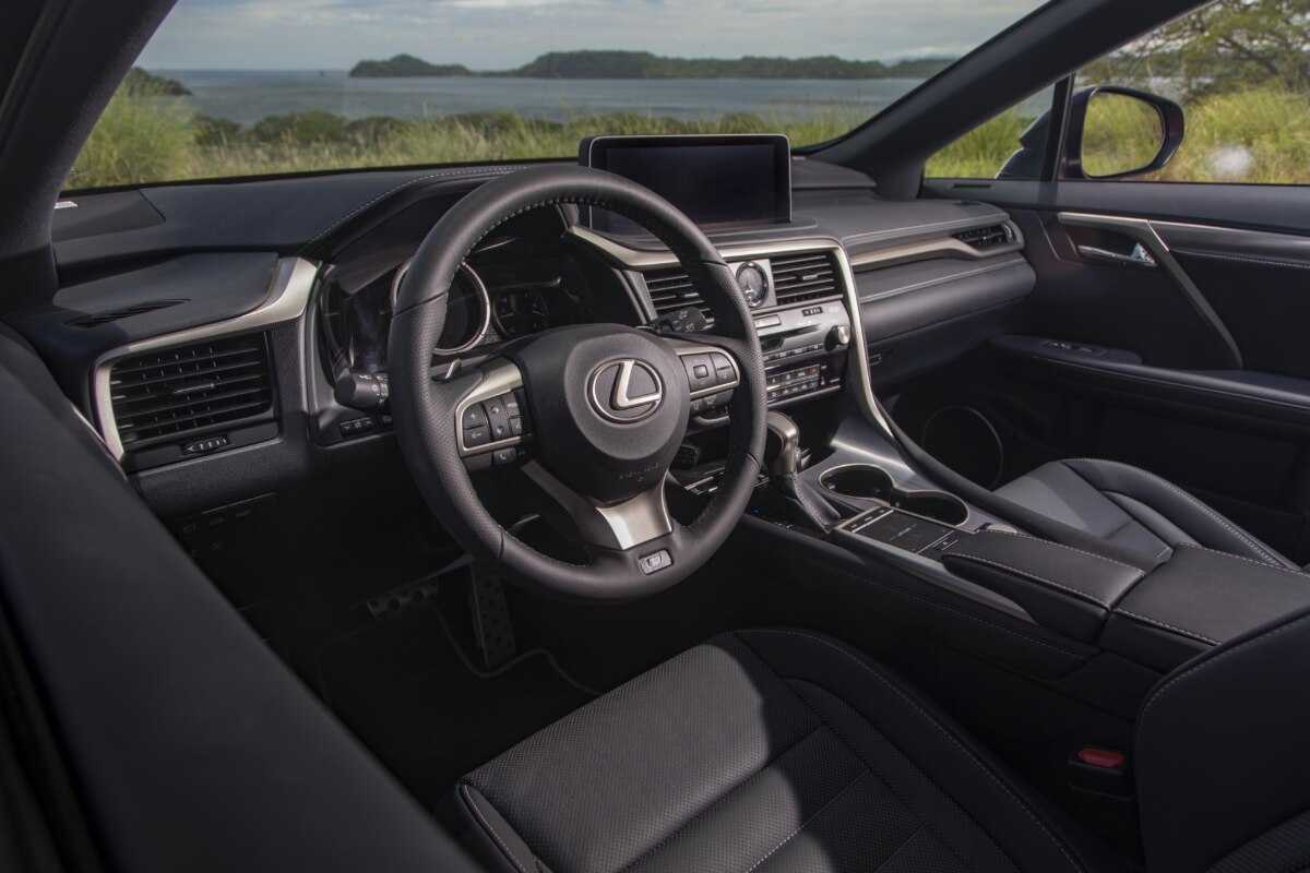 Салон у Lexus RX исполнен в фирменной для японской марки стилистике. В частности, на центральной консоли присутствуют аналоговые часы и 2 тонких блока управления встроенной электроникой. Сверху над ними располагается сенсорный монитор. По центру аналоговой приборной панели производитель разместил широкий спидометр, выделив под него отдельный «колодец». Форма рулевого колеса, как и тип применяемых отделочных материалов, зависит от выбранной комплектации. То же самое касается конструкции передних кресел.