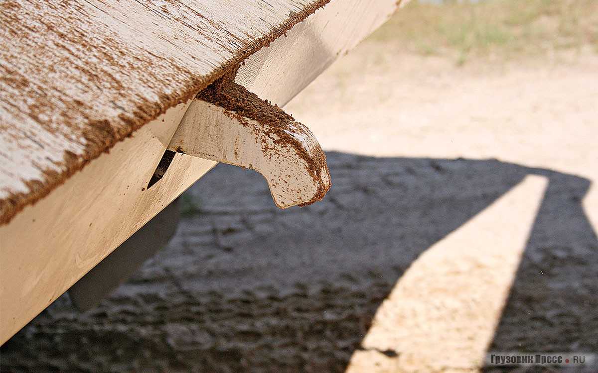 Самосвальный кузов заслуживает отдельного внимания, хотя бы по причине герметичности. Задний борт закрывается плотно настолько, что дождевая вода, наполнившая кузов, практически не вытекала через стыки закрытого борта – хоть купание устраивай. Во время разгрузки замки заднего борта открываются автоматически, но расположение крючков в запорной системе нетрадиционно: не так, как мы привыкли видеть – выемкой вверх, а наоборот – выемкой вниз. Петли, расположенные в нижней части заднего борта, точно попадают под запорные крючки во время опускания кузова после разгрузки, при этом крючки очень плотно притягивают борт к платформе. Из этого можно сделать вывод о тщательно продуманной системе запора заднего борта самосвального кузова.