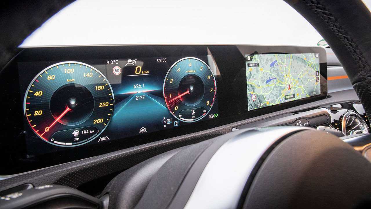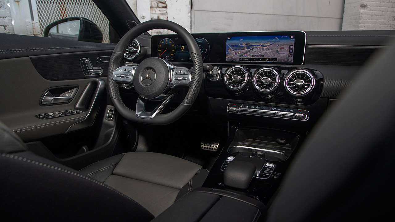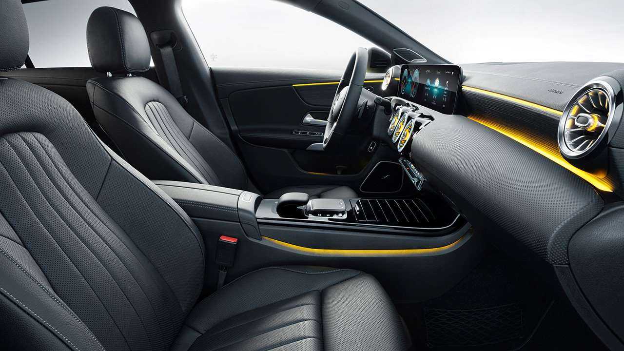 Салон практически неотличим от A-Class. Колесо руля получилось мультифункциональным и вместе с тем очень компактным. Один мультимедийный экран представляет собой панель приборов, второй поддерживает управление голосом. Переднюю панель украшают дефлекторы обдува, консоль плавно перетекает в тоннель с подлокотником.