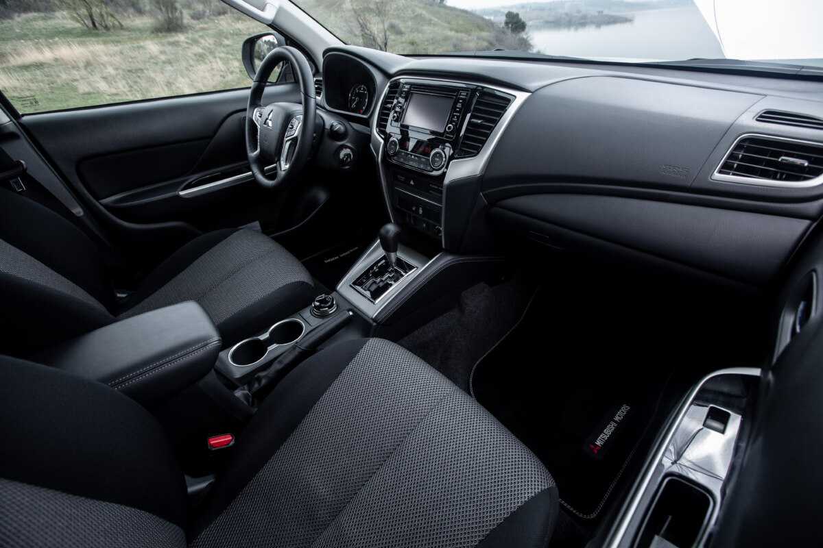 Если говорить про другой японский пикап Mitsubishi L200, то он ничем не уступает своему непосредственному конкуренту. Оформление выполнено в том же черном цвете, просматривается качество и дороговизна используемых материалов. Кроме того, здесь также присутствуют некоторые декоративные элементы, которые подчеркивают основной стиль модели. В пикапе больше всего внимания притягивает центральная консоль, плавно переходящая в тоннель. Здесь внимания заслуживает блок управления климатом, а также большой экран мультимедийной системы с сенсорным управлением, расположенный на привычном месте.