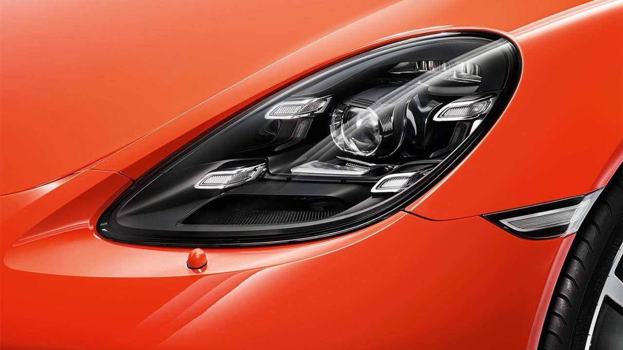 Кабриолет имеет очень привлекательный, динамичный и современный дизайн. Во многом он схож с третьей генерацией Бокстера. На «морде» расположилась головная оптика в строгом стиле, наполненная светодиодами и LED огнями. Изящность и элегантность подчеркивает передний бампер, в которые встроены огромные дефлекторы воздуховода.