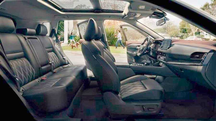 По салонному пространству Х-Трейл T33 еще более значительно отличается от предшественника, чем по экстерьеру: он оснащается абсолютно другой приборной панелью, мультимедийной системой с сенсорным 9-дюймовым экраном планшетного типа, двухзонным климат-контролем в базовой комплектации.