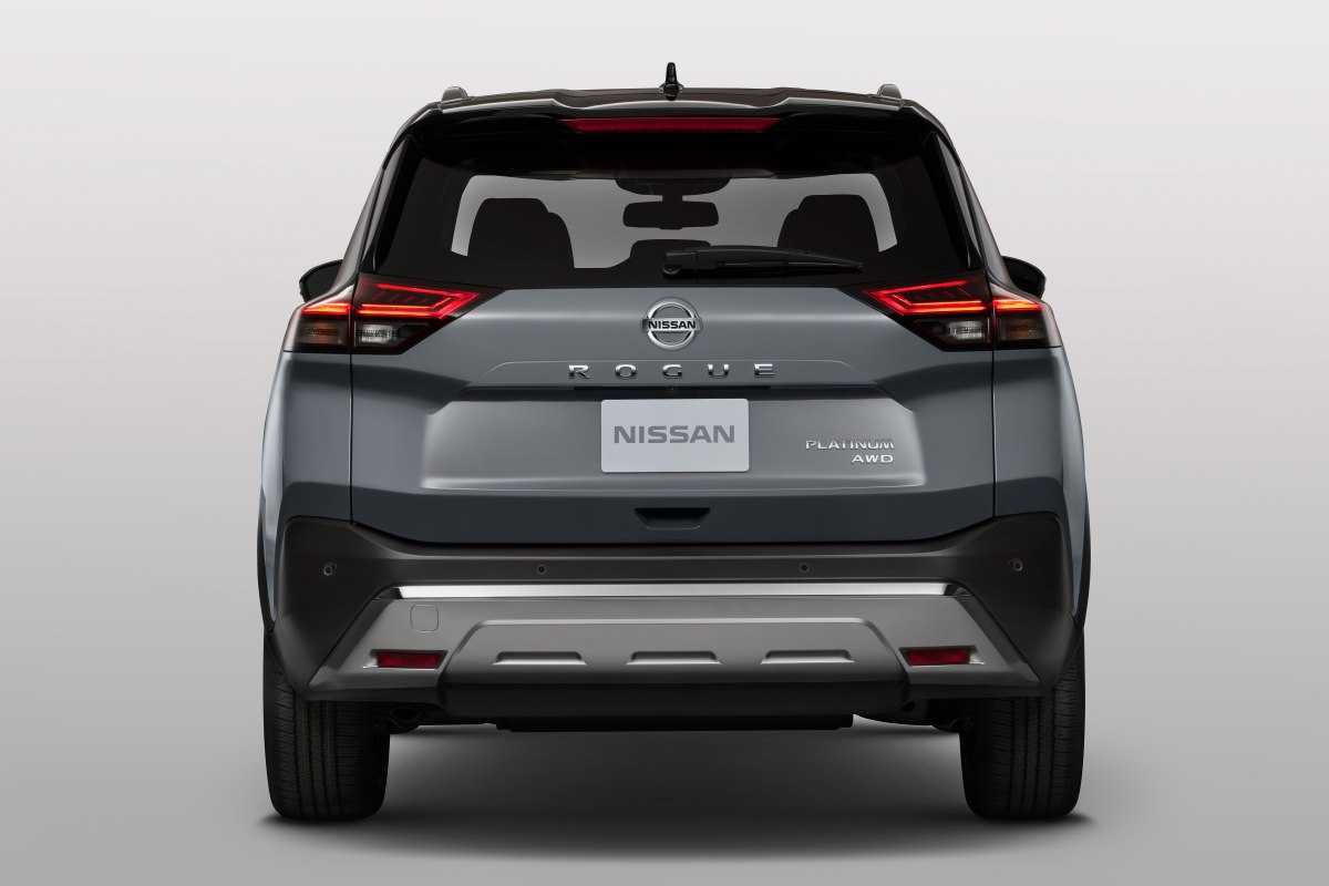 Японская модель выделяется на фоне конкурентов своим спортивным кузовом с удлиненной передней частью, где располагается вытянутая радиаторная решетка с V-образной каймой. От нее вдоль нижней кромки капота протянулись светодиодные фонари с заостренными краями. Крупный передний бампер дополняется узким воздухозаборником и разнесенными по бокам нишами, в которых размещены прямоугольные противотуманные огни. На корме у X-Trail установлены большие фонари, которые немного заходят на боковую часть кузова. Задний бампер снизу защищен широкой металлической пластиной.