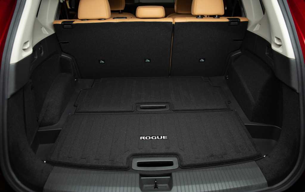 - объем багажника 512 литров (на 15 литров больше, чем в предыдущей версии Nissan X Trail). После складывания сидений заднего ряда объем может быть увеличен до 1600 литров.