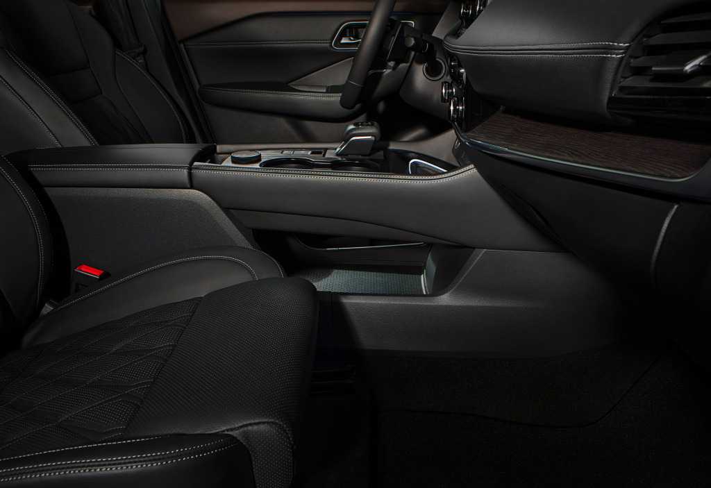Дизайн салона довольно сильно меняется в зависимости от выбранной версии. В топовых модификациях кожей обшиты не только сидения, но и передняя панель. При этом центральная консоль у X-Trail в сравнении даже с китайскими кроссоверами выглядит устаревшей. Она заполнена множеством физических клавиш и содержит небольшой сенсорный экран. Зато руль у X-Trail исполнен в спортивной стилистике со скошенным низом и металлическими вставками на «спицах». Приборная панель, как и ранее, аналоговая.
