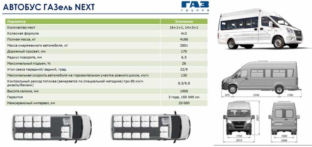 Привод у машины задний, двигатель в двух модификациях ёмкостью 2,8 л. Один вариант имеет топливный бак на 64 литра бензина, второй — газовый оснащается баллоном на 104 л. О Газелях Next с бензиновым двигателем Evotech можете узнать из статьи на нашем сайте.