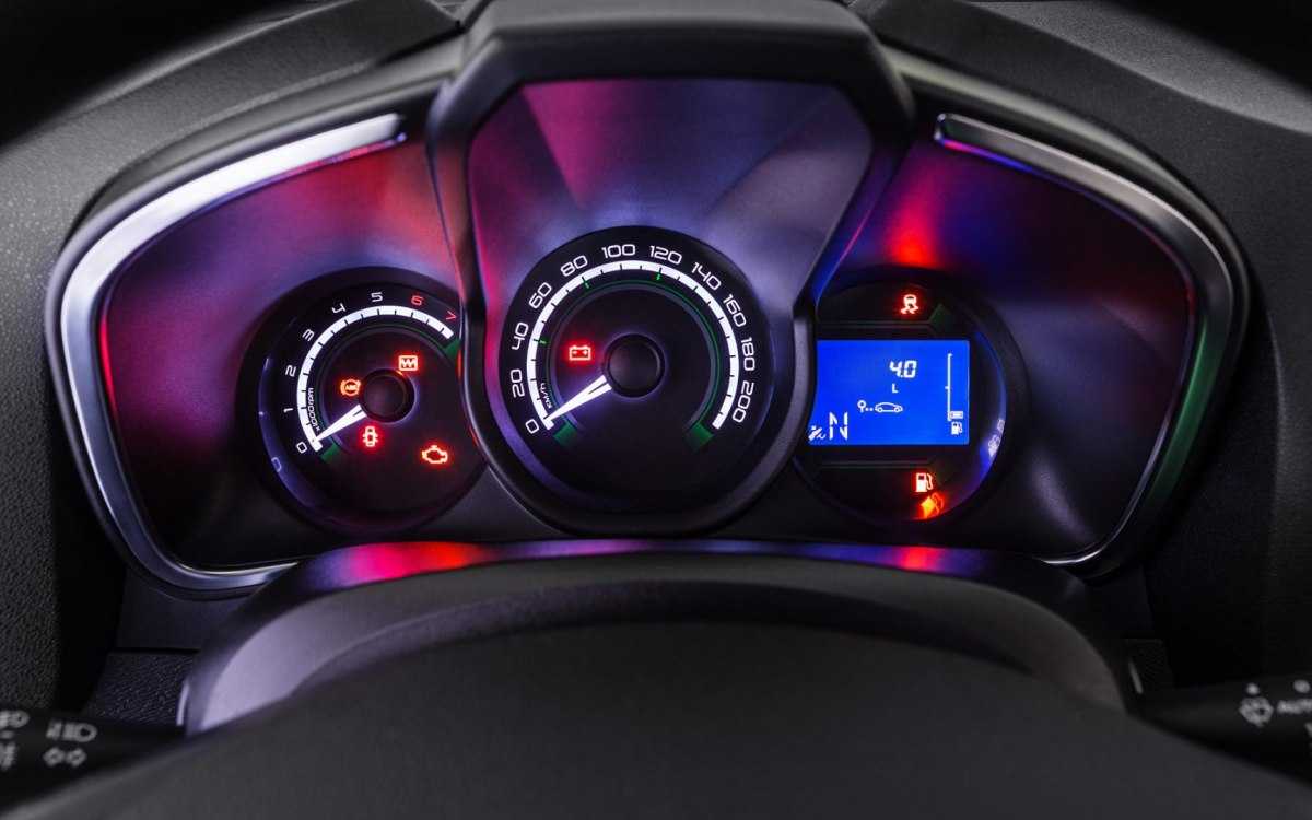 Интерьер салона Lada Xray прекрасно дополняет передняя панель, которая состоит из трех крупных циферблатов. Панель сделана в спортивном стиле. Все показатели отлично видны при любом освещении.