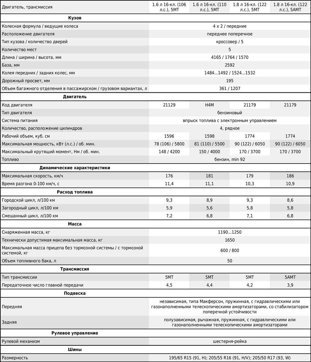 Первый тип двигателя является продуктом разработки французского концерна Renault-Nissan и работает совместно с бесступенчатым вариатором. В таком исполнении автомобиль способен разогнаться до «сотни» за 12,8 секунды, а затраты бензина составят 7,3 литра. В пару к 1,8-литровому «атмосфернику» от АвтоВАЗа полагается установка 5-скоростной «механики». Данное техническое исполнение позволяет разгоняться новому кросс-хэтчу до 100 км/ч за 10,9 секунды. Показатель предельной скорости для модели будет составлять 180 км/ч. При этом расход топлива для такой комплектации равен 7,5 литров на «сотню».