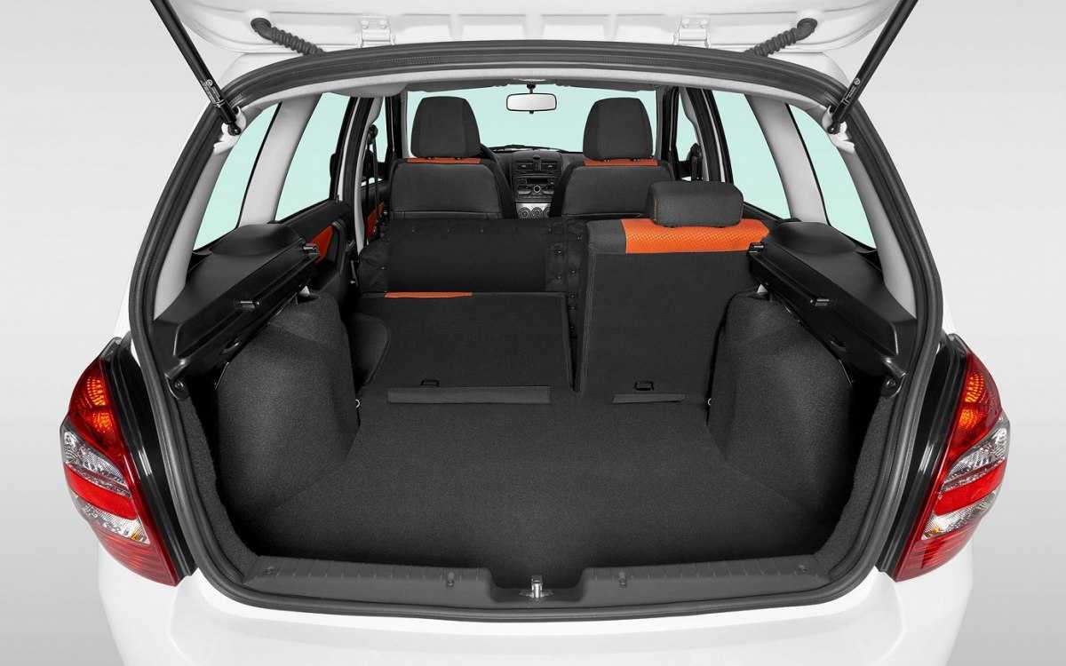 Объем багажника новой версии Калины равняется 260 л, он увеличился по сравнению с предыдущим седаном на 10 л, а в кузове универсал багажное отделение вмещает 360 л без складывания заднего дивана. Открыть багажник можно ключом, в средней и дорогой комплектации для этого достаточно нажать кнопку в салоне или на брелоке с ключами. В любой из комплектации в багажном отсеке находится запаска.