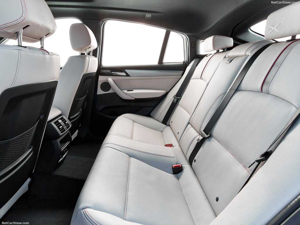 Оформление салона новинки схоже с дизайном X3: для отделки используются качественные материалы, инженеры предусмотрели комфортные кресла. Автомобиль предлагается в нескольких вариантах цветового оформления интерьера, обшивка может быть полностью тканевой, комбинированной или кожаной. Преимущества нового BMW X4: