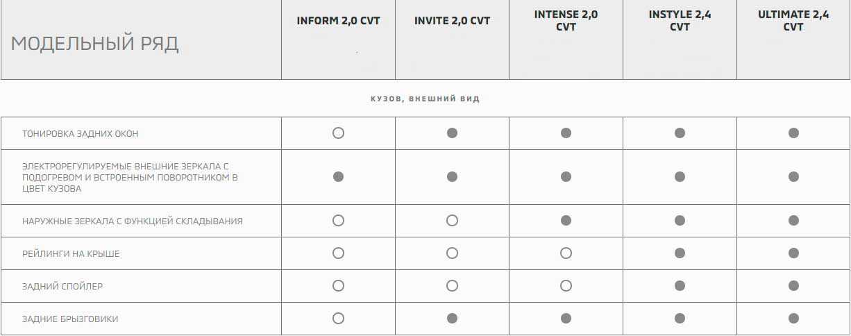 Рейлинги и антикрыло идут в комплектациях с 2.4 мотором.