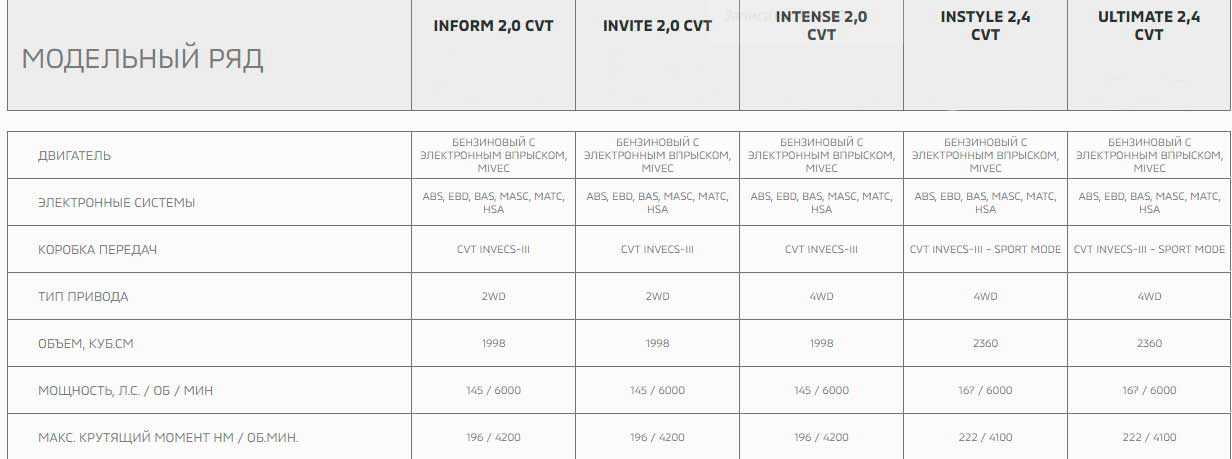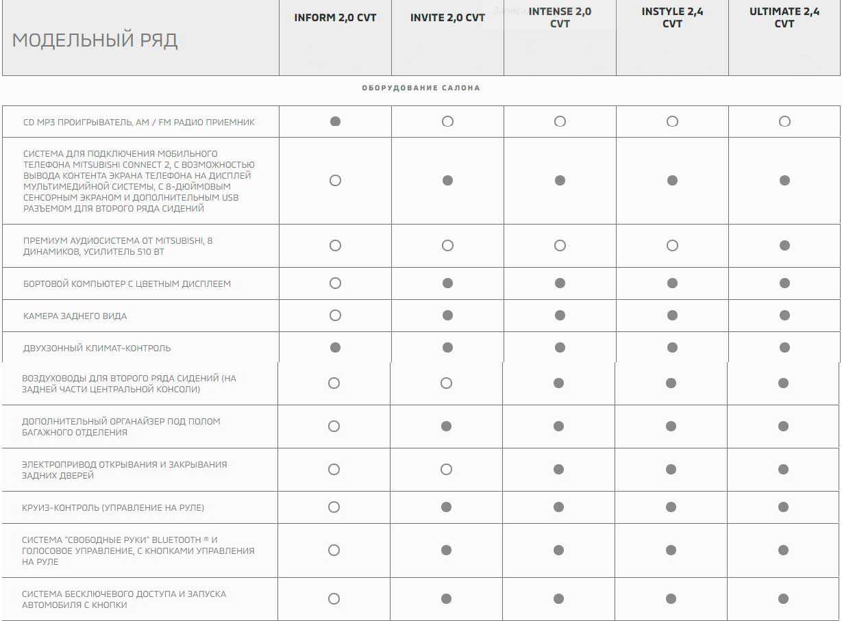 Максимальная комплектация — Ultimate. Круче могут быть только версии Mitsubishi Outlander, изготовленные по индивидуальному заказу.