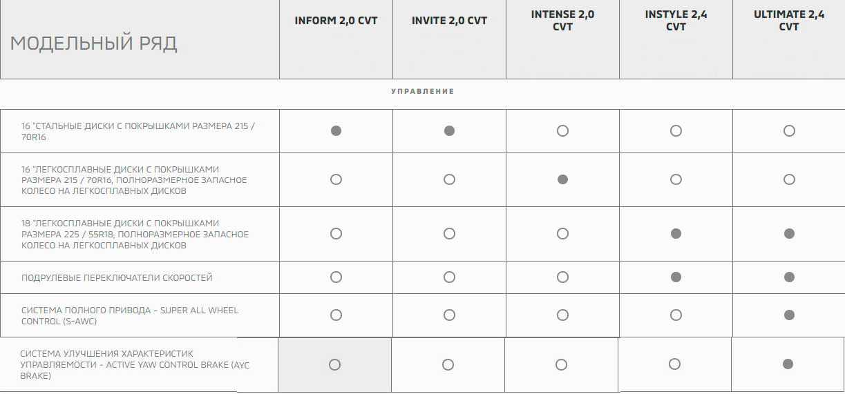 Mitsubishi Outlander в предыдущих поколениях представлен в дилерских центрах в пяти комплектациях: