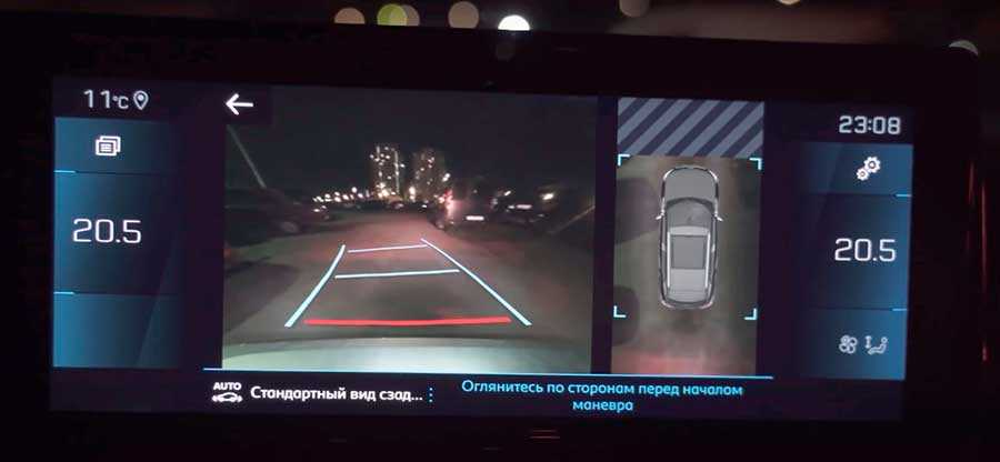 - камера заднего вида с обзором 180º, с передними/задними парковочными датчиками;