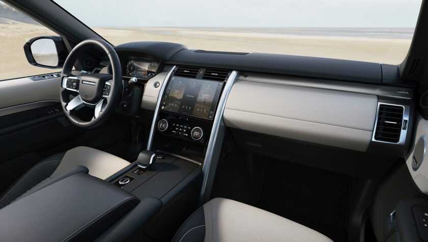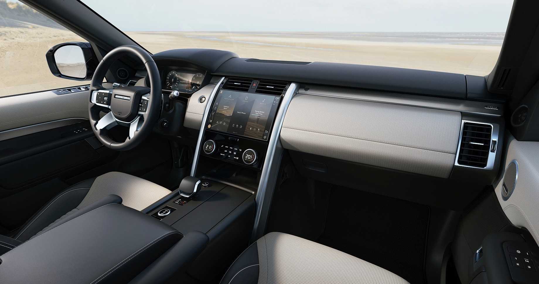 Кроме нового заднего дивана, получившего более высокую подушку, в салоне Land Rover Discovery 2021 года обнаруживается новое рулевое колесо – такое же, как на Defender’е.