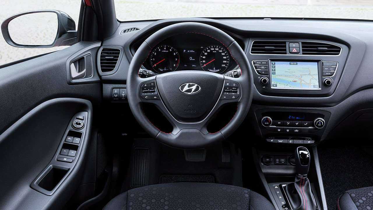 Интерьер Хендай i20 подвергся масштабной перестройке. Автомобиль 3-го поколения получил абсолютно новую переднюю панель с горизонтальными линиями на всю ширину, современный мультифункциональный руль и видоизмененные дверные карты. Изысканности внутренней отделке добавляет мягкая светодиодная подсветка. Цветовых схем обивки предусмотрено две – черная и черно-серая.