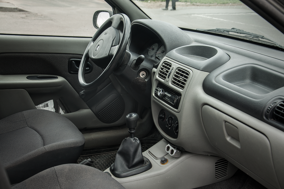 Посадка в автомобиль очень удобная – двери раскрываются на хороший угол. Дизайн интерьера во многом напоминает «Логан». Здесь находятся такие же круглые дефлекторы и центральная консоль с мультимедиа-экраном. Довольно необычное у «Симбола» оформление приборного щитка: по центру овальный «колодец» с цифровым спидометром, а по бокам – пара стрелочных указателей. Присутствует здесь и бортовой компьютер, который показывает информацию о суточном пробеге и среднем расходе топлива за разный период.