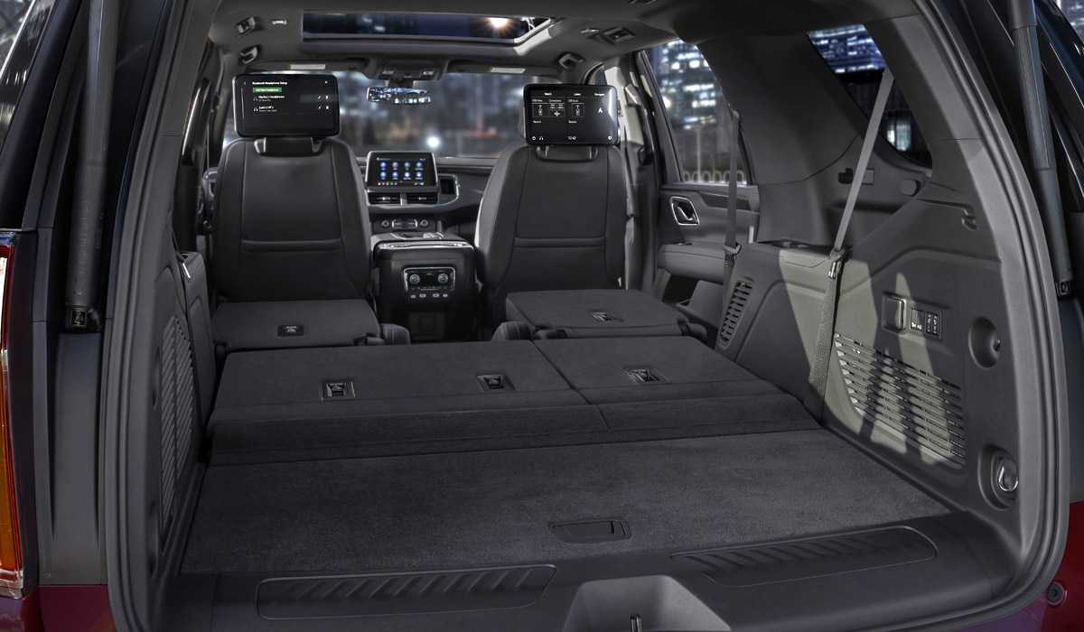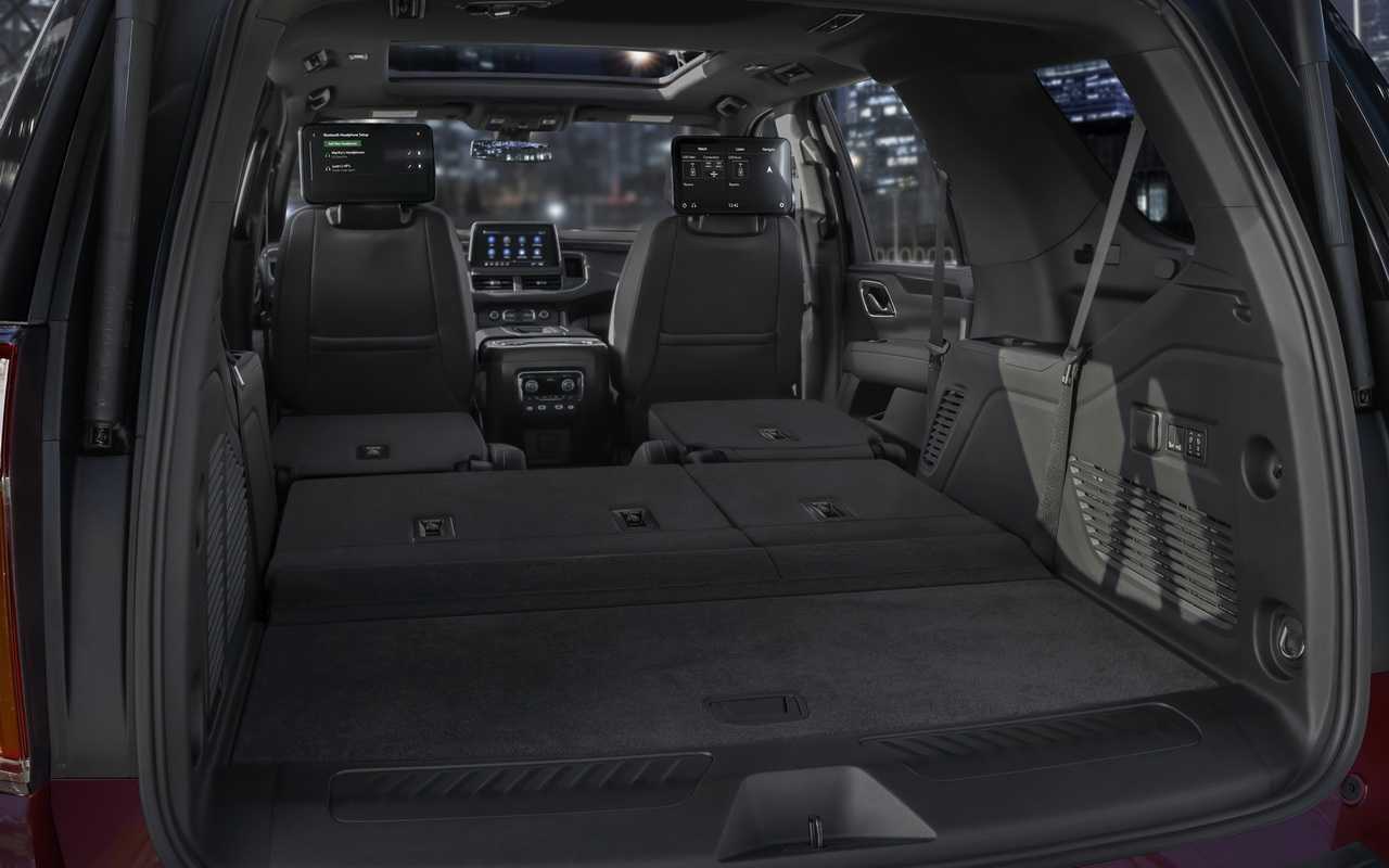 Кроме того, новая задняя подвеска позволит обеспечить более компактную схему складывания сидений, образующую ровный пол, и тем самым увеличить объем грузового пространства до рекордных 3479 литров (почти на треть больше, чем в прежнем Тахо).