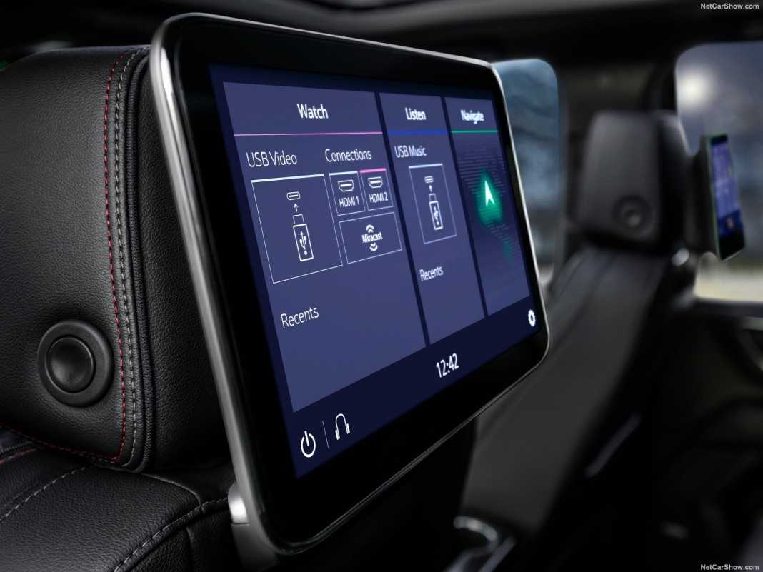Центральная консоль обладает достаточно большим количеством элементов для удобного и безопасного управления внедорожником. Украшает ее 10-дюймовый сенсорный дисплей развлекательного центра, который утоплен в углублении торпедо. Вдобавок к этому, консоль оснащена рядом воздуховодов, физическими кнопками, джойстиками и шайбой для управления основными системами авто.